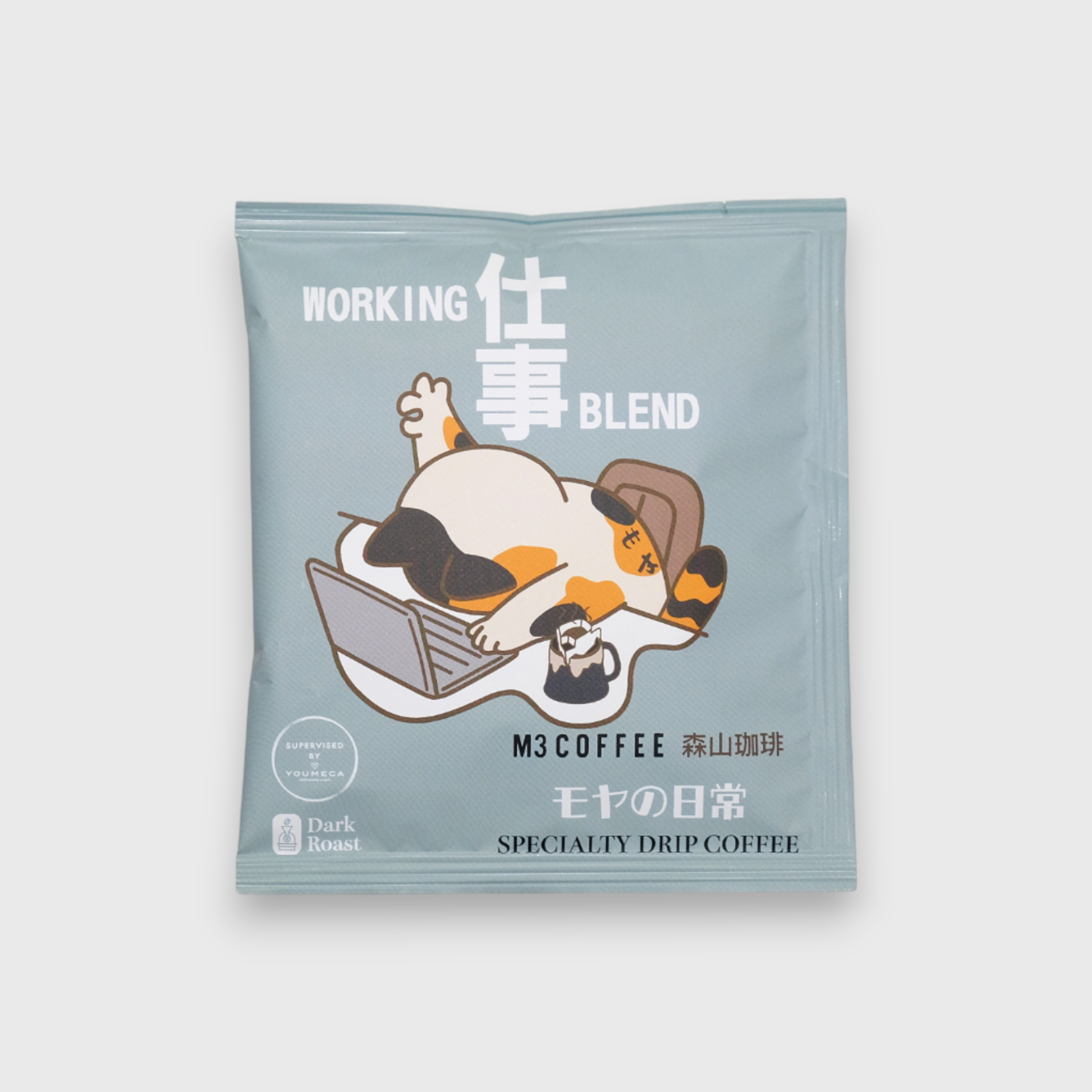 To celebrate M3 's 2nd anniversary , after more than half a year of preparation , the first installment of the "2nd Anniversary Celebration Project" – M3's own-brand drip coffee bags – is finally here! This time, our partner is Osaka YOUMECA, who became a sensation in Loft, Japan for their "Dessert Companion Drip Coffee Bags." They supervised the production of our drip coffee bags, which are not only made in Japan but also use nitrogen-filled packaging to extend shelf life and preserve the coffee's optimal flavor! The packaging is themed around M3's mascot cat, " Moya 's Daily Life ," and features 5 different coffees suitable for different times of day, perfect for mornings, afternoons, work, desserts, and relaxing moments. Each one has been meticulously researched by Japanese roasters, who have carefully selected the right beans and roast levels, ensuring you can enjoy the best flavor at any time and change your mood anytime!